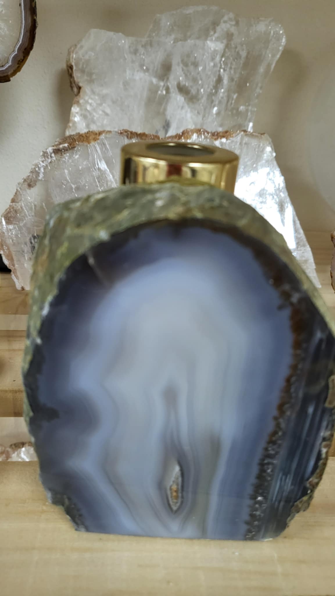Geweldige diffuser van de edelsteen Agaat. Deze edelsteen diffuser is afkomstig uit Brazilië. In de diffuser gaat ongeveer 15ml vloeistof in . De vloeistof en geurstokjes worden niet mee geleverd . Agaat Agaat is een aardende steen die krachtig reinigt en voor fysiek, emotioneel en intellectueel evenwicht zorgt. Werkt kalmerend, rustig aan, maar geeft veel kracht. Zorgt voor acceptatie en zelfvertrouwen. Agaat zorgt voor een betere concentratie en moedigt oprechtheid en het spreken van de waarheid aan. Emotioneel overwint dit kristal negativisme en verbittering van het hart. Geneest innerlijke woede en geeft moed om opnieuw te beginnen. Spiritueel verhoogt agaat het bewustzijn en verbindt u met de eenheid van het leven. Agaat transformeert negatieve enerieën. Goed voor de spijsvertering, de maag, ogen en de baarmoeder. Agaat reinigt het lymfstelsel en de alvleesklier, verstevigt de bloedvaten en geneest huidaandoeningen.Agate is a very protective stone. It is especially protective for children, and makes an excellent stone for children’s amulets,  medicine bags, jewelry, or just to carry around in a pocket. Agates are said to be especially useful for protecting children from falling. Agate is also used to protect against harmful spirits.Because of the harmonizing qualities of agate, and its emotional energies of removing and releasing resentments and bitterness, it is also considered by many to be an excellent stone for helping to heal and improve relationships.Agate is said to strengthen the body and the body’s connection to the earth. It also increases energy. Agate is used in crystal healing for healing of all kinds by bringing the elements of the healee into harmony. Physically, agate is said to be particularly helpful with tooth and gum issues, stomach problems, physical endurance, insomnia, detoxification.