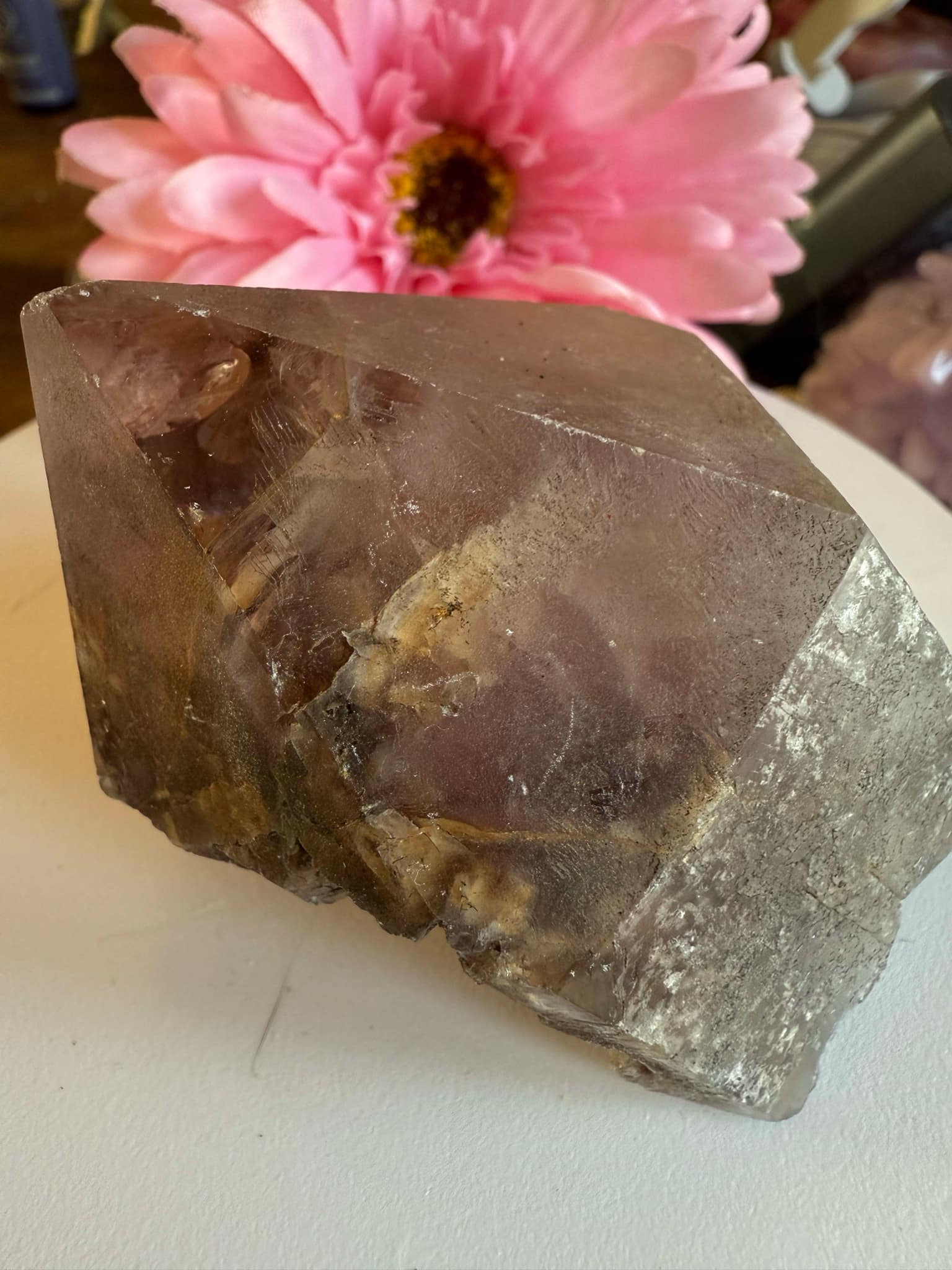 Amethist/ Prasioliet met inclusies