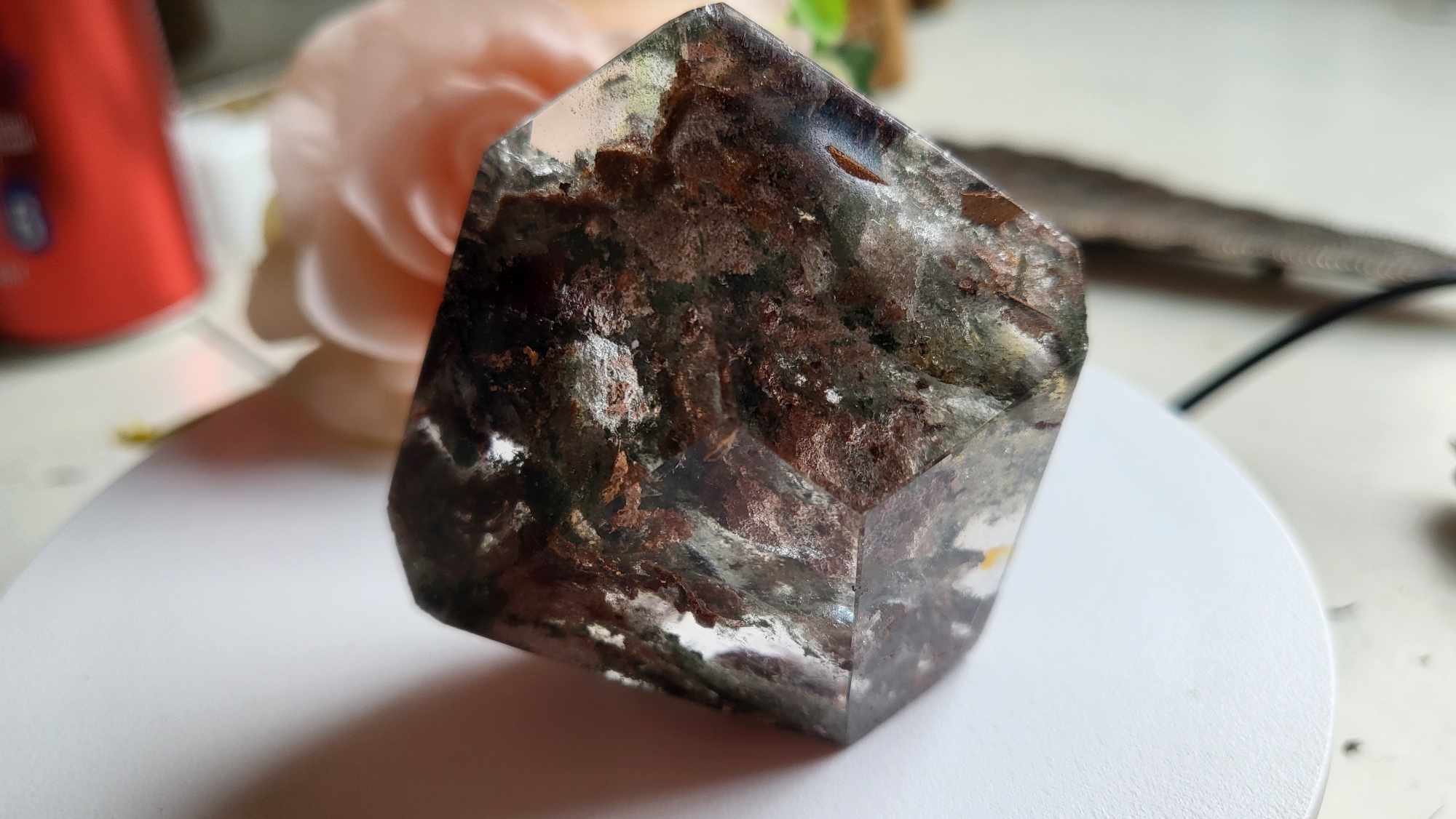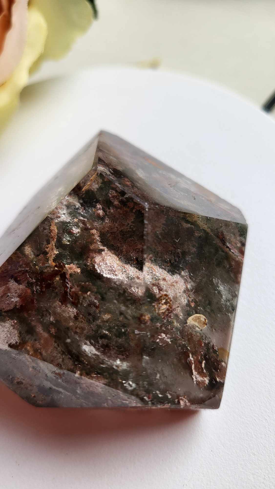 Afm: 5 x 5.5 x 3 cm Gewicht: 97 gram Garden Crystal is een pas gevonden speciale Lodoliet uit Araçuai, Minas Gerais met een zeer hoge vibratie. De naam van dit unieke, zeldzame kristal is heel treffend omdat deze kristallen de energie van het Hof van Eden, het aardse paradijs uitstralen. Ze zijn een hele hoge trilling van Lodoliet en ook de inclusies zijn anders dan de traditionele Lodoliet.  Dit zorgt voor de hogere energie en liefde die het kristal laat vibreren. Het kwarts zelf bevat ook een hogere trilling en is te vergelijken met Amfiboolkwarts. Deze bijzondere en magische kristallen uit Brazilië worden ook wel sjamanen droomkristallen genoemd omdat ze je kennis van vorige levens via dromen brengen. Deze zeer heldere kristallen met inclusies en zwemen als engelenvleugels verhogen je trilling en versterken je communicatie met Engelen, Lichtwezens en Gidsen, maar ook met de Devische Rijken, de planten en dierenrijken van onze Moeder Aarde. Door in een Garden Crystal te staren kun je in andere werelden schouwen en kan er een kosmische verschuiving van je bewustzijn plaats vinden. Je kunt naar verschillende niveaus en werelden reizen, zowel kosmische als persoonlijke als die van de ziel en ook in de ruimten van diepe universele liefde schouwen, waar je leert vanuit je hart te leven. Deze kristallen hebben een hoge vibratie ondanks hun aardse oorsprong, ook hebben ze een zeer vriendelijke en kalmerende energie. Op je kruinchakra gelegd of gericht activeren ze alle hogere chakra’s. Je krijgt dan makkelijker contact met je hogere zelven en op je 3eoog stemt hij je af op de wijsheden van de universele geest. Sommige inclusies stabiliseren en beschermen, anderen aarden, lossen negativiteit op en beschermen je aura. Fysiek zijn het krachtige healers die een helende werking op je cellen hebben en die de vochthuishouding in evenwicht houden. Ook goed voor de spijsvertering. Ze zuiveren chemische gifstoffen en andere vervuilingen in het lichaam.