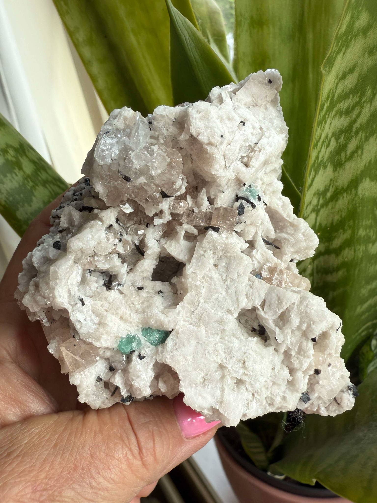 Fluorieten vinden we in alle kleuren, vaak meerdere kleuren in een kristal en vaak in lagen, dit symboliseert allerlei innerlijke groeiprocessen op meerdere lagen. De steen werkt harmoniserend en brengt je energie in balans….Fluoriet biedt veel bescherming, vooral op psychisch niveau. Fluoriet werkt met diverse lichtmeesters en galactische stralen samen, dit varieert per kristal en hangt met de kleur samen. Het transparante of witte brengt vooral hoger licht in je systeem. Het opent je bewustzijn. Het paarse werkt sterk openend op je hogere chakra’s, het blauwe brengt vooral diepe healing op je keel en schoudergebied en opent je kanalen naar lichtmeesters, gidsen en engelen, maar ook naar je hartverbinding. Het groene is vooral werkzaam op je hartgebied, het gele is zeer krachtig voor de zonnevlecht en kan helpen om oude angsten of onzekerheden aan te pakken en uit te lijnen met goddelijk vertrouwen. Fluoriet reinigt en stabiliseert de aura en is zeer effectief bij straling, verwijdert negativiteit en stress. De steen aardt en integreert spirituele energieën, lost vastgeroest gewoonten op, brengt onderdrukte gevoelens naar boven en vergroot het zelfvertrouwen. Het is behulpzaam bij het studeren en werkt goed bij infecties, tanden, cellen, botten, als elixer zeer krachtig tegen virussen. Huid, slijmvliezen, puistjes, wonden, verkoudheid en griep. Verlicht bij artritis en reumatiek.