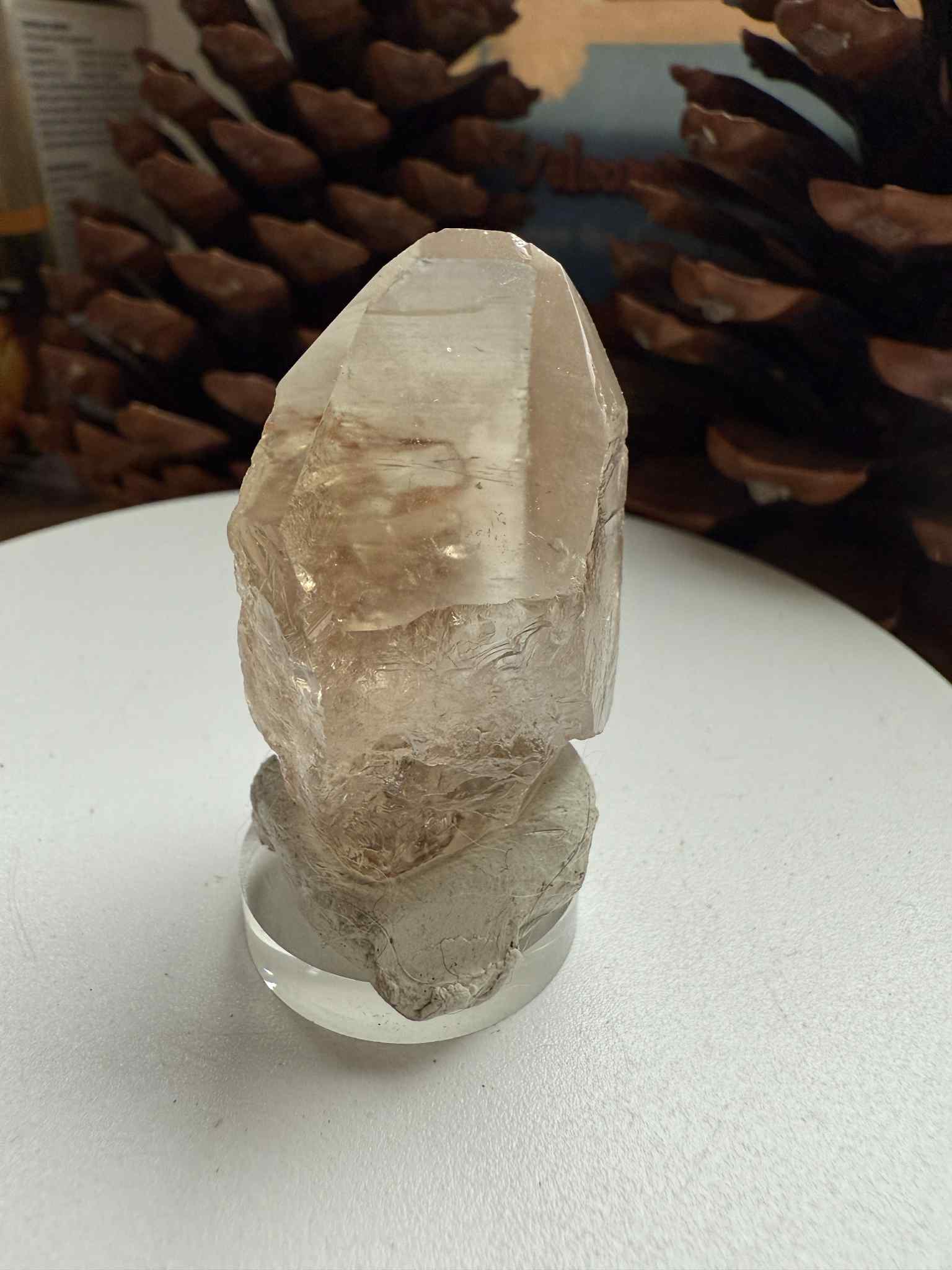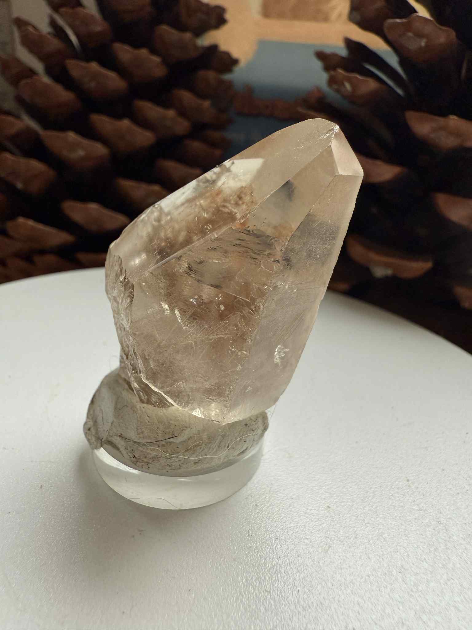 Afm; 5 x 2 x 3 cm Gewicht: 40 gram Kundalini Citrien Kundalini Citrien is een zeer zeldzame vorm van Citrien uit Congo . De steen kenmerkt zich door kleine puntjes om de hoofdpunt heen, voor ons is het de krachtigste Citrien die we tot nu toe zijn tegengekomen. Het is een natuurlijke Citrien die de kundalini-energie langs de ruggengraat laat opstijgen van de basischakra naar de kruinchakra. Kundalini Citrien reinigt alle chakra’s en opent hogere chakra’s voor de zielenster en verder. Boven het hoofd gehouden schept hij een kosmisch orgasme dat je naar het hart van de schepping meeneemt om medeschepper te worden, een ervaring die hij dan in de functionele werkelijkheid aardt. Dit is een volmaakt kristal voor mensen die tantra willen beoefen of hun seksualiteit naar een hoger plan willen brengen. De steen verhoogt het libido en deblokkeert de voortplantings-organen. Tevens bevat Kundalini Citrien alle eigenschappen van een ‘normale’ Citrien. Dit kristal van overvloed geeft vreugde en energie aan allen die hem zien, tevens transformeert het negatieve energie meteen en houdt die niet vast. Ook is dit een van de meest reinigende stenen. Deze beschermende steen heeft een sterke band met de aarde. Dit kristal is uitstekend voor het verbeteren van paranormale vermogens en om ze vervolgens te integreren in het dagelijks leven. Kundalini Citrien verwijdert blokkades op je spirituele pad, absorbeert geopatische en elektromagnetische smog en helpt bij uitscheiding en ontgifting op alle niveaus en vult de ruimte met een positieve vibratie. Kundalini citrien verwijdert overtuigingen en gedachtepatronen die je gevangen houden in armoede en effent aldus het pad der overvloed. Dit kristal reinigt de etherisch blauwdruk en verwijdert de gevolgen van schadelijk gedrag uit vorige levens. Kundalini Citrien is goed bij depressie, angsten, nachtmerries, alzheimer, jeuk, ontgifting, ME, spijsvertering, milt, alvleesklier, nier- en blaasinfecties, constipatie, cellulitis en schildklier, ook verlicht het pijn, ook hoofdpijn en heft het krampen op.