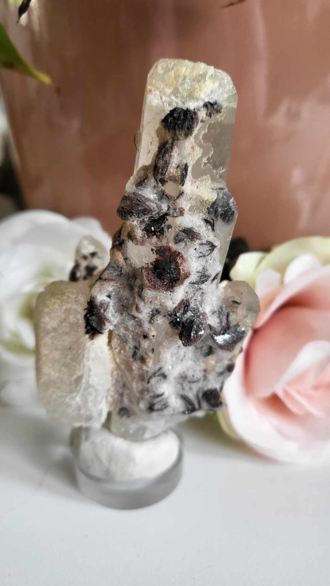 Magisch Laserkwarts is 2016 nieuwgevonden in Huanggang, Binnen Mongolië. Het zijn prachtige lasers die een coating bevatten, soms van Calciet en soms met Hematiet of beide. Deze coating geeft de lasers een magische, Devische energie. Magisch Laserkwarts is verbonden met de energie van Magiërs zoals Merlijn en heeft een sterke verbinding met de natuurwezens. Het is een zeer zeldzaam kristal die een krachtig spiritueel medicijn is en die een sterke band met de aarde heeft, het helpt spirituele informatie te aarden. Het kristal van overgang en transformatie helpt je van de ene staat naar de andere te gaan. Tevens is het een instrument om interdimensionaal te reizen, ook naar je innerlijke werelden. Het zijn krachtige, zachte, mysterieuze laserkwartsen die helpen om alles wat nog niet in balans is te transformeren, ze brengen groei en verdieping en zijn heel beschermend. Ze helpen emoties te verwerken en pijnen te transformeren in vreugde en blijheid. Ze helpen alle mensen op aarde te verbinden en om in liefde te leven. Naar het leven op aarde te kijken door de ogen van een kind, onschuldig en in totale verwondering. Zo helpen ze mee om weer vrede op aarde te creëren. Ze verhogen je bewustzijn naar een kosmisch bewustzijn. Zeer krachtig hulpmiddel tijdens meditaties en krachtige healers. Door hun puntige vorm kan energie met grote snelheid door het lichaam van het kristal reizen en bij de punt wordt het geprojecteerd als een laser. Zeer goed te gebruiken voor etherische chirurgie en het verwijderen van entiteiten en implantaten. Als het kristal Hematiet bevat heeft dit een positieve invloed op het bloed en voorkomt het dat negatieve energieën in de fijnstoffelijke lichamen terechtkomen. Ze helpen de goddelijke blauwdruk van ‘heelheid’ in het fysieke lichaam te activeren. Deze kristallen zenden hoge lichtfrequenties uit en helpen deze in je lichaam te aarden.