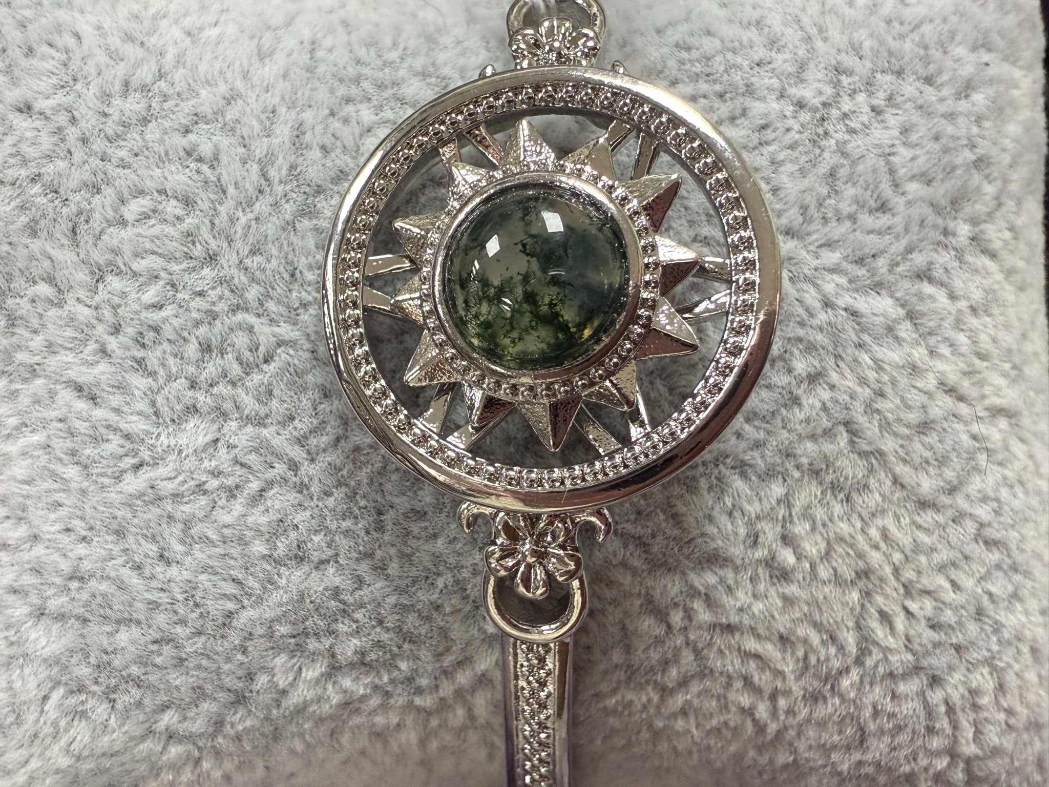 Titanium Steel Mosagaat is heel goed voor mensen met schrik en angsten en fobieën of straatvrees, door het dragen krijg je meer eigenwaarde en gevoel van onaantastbaarheid, hij helpt je om overal weer de schoonheid van in te zien. Mosagaat helpt je bij gevoeligheid voor het weer en bij milieuvervuiling. Deze steen is zeer goed voor alle mensen die met planten en gewassen werken. Het is een steen voor een nieuw begin en helpt bij het opheffen van blokkades. Bij een scheiding, overlijden of intens verdriet geeft de mosagaat een steuntje in de rug, hij helpt je ook bij het afscheid nemen van het verleden en geeft rust in lichaam en geest. Mosagaat is een steen van rijkdom en trekt overvloed aan. Hij helpt ook mensen die erg in hun hoofd zitten bij hun gevoel te komen. De steen helpt om met andere mensen om te gaan en deze ruimte tot groei te geven. Geestelijk bevordert hij zelfexpressie en communicatie. Deze optimistische steen is zeer behulpzaam voor mensen die depressief zijn vanwege hun levensomstandigheden of door een onbalans in de hersenen, hij geeft dan inzicht in de achterlliggende oorzaken. Mosagaat is goed bij ongemakken aan de neus- en keelholten, ook zorgt hij voor het beter oplossen van slijm, ontkrampt de maag, darmen en blaas. Ook goed voor de seksuele organen en maakt ze gelijktijdig actief. De steen gaat ontstekingen tegen, reinigt de bloedsomloop en versterkt het immuunsysteem. Goed voor het lymfesysteem en als elixer op de huid aangebracht behandelt mosagaat schimmelinfecties en andere huidinfecties.