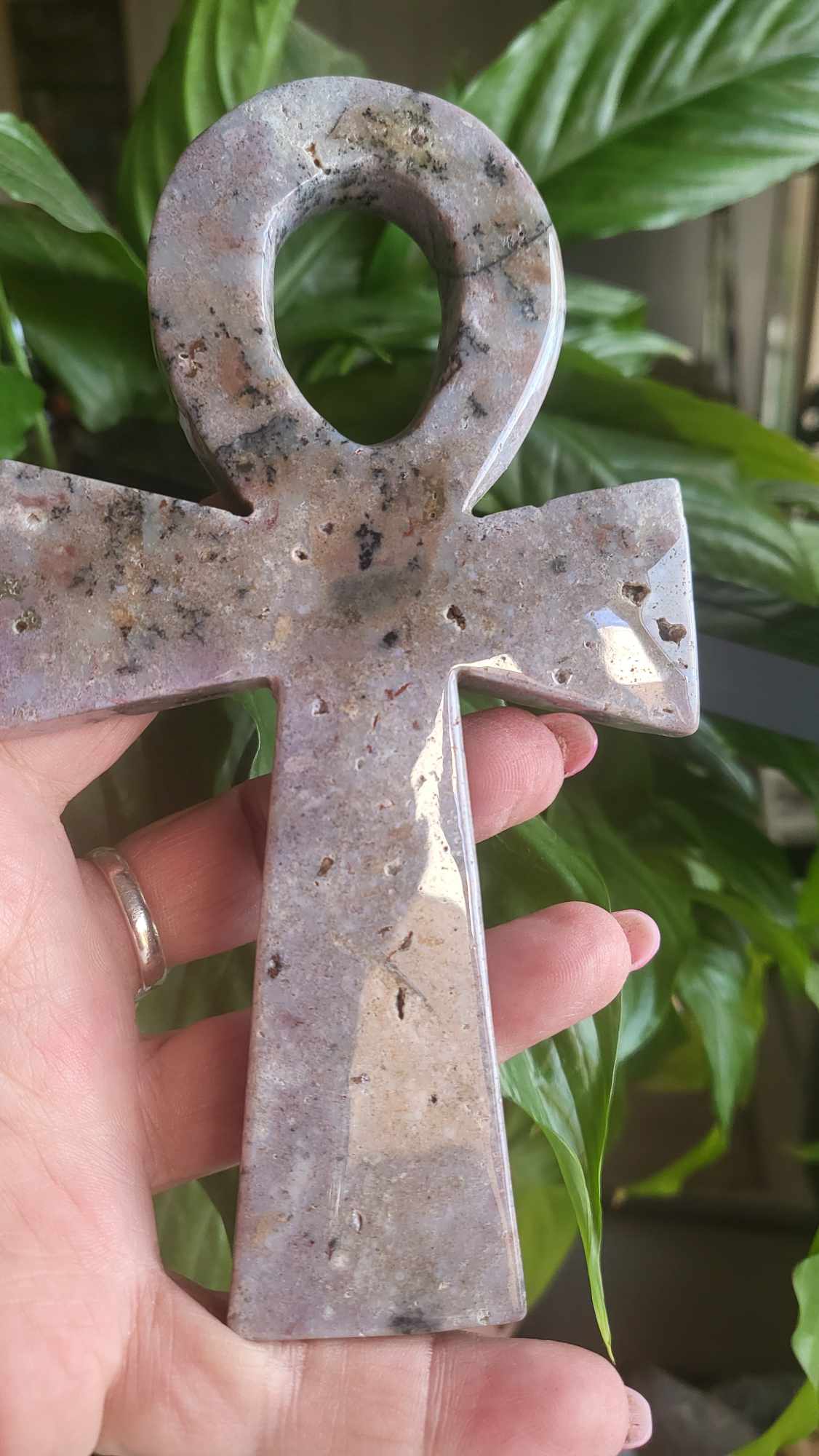 Afm: 15 x 8.5 x 1  cm Gewicht: 170 gram Oceaanjaspis of Atlantissteen is ontdekt in Madagaskar tijdens de millenniumwisseling en wordt bij eb gewonnen, waardoor het naar verluidt een band heeft met Atlantis en mystieke kennis bevat.Oceaanjaspis staat bekend als de “ultieme verzorger”.Door de aardende energie in het lichaam is de steen zeer geschikt voor het afstemmen van alle chakra’s, de fijnstoffelijke lichamen en de meridianen.Nuttig tijdens sjamanenreis.Waarborgt bescherming tegen allerlei negatieve energiën.De steen verenigt verleden en heden en zorgt voor heelheid.Meditatie met deze steen voert naar het verleden om uw wijsheid te herwinnen of om eventueel misbruik van uw spirituele kracht uit die periode te herschikken en te transmuteren.Deze steen biedt verjonging, kracht en helpt om uzelf en anderen te begrijpen en van te houden.De steen zorgt voor een positieve kijk op de toekomst en helpt ons door de verandering heen te gaan.De steen helpt bij het herstel en genezing na ziekte.Goed bij ontgifting, immuunsysteem, stress, lymfe, bloedsomloop, vrouwelijke voortplantingsorganen, PMS, spijsvertering, tumoren, tandvleesinfecties, eczeem, verkoudheid, slapeloosheid, ontstekingen, huidziekten.