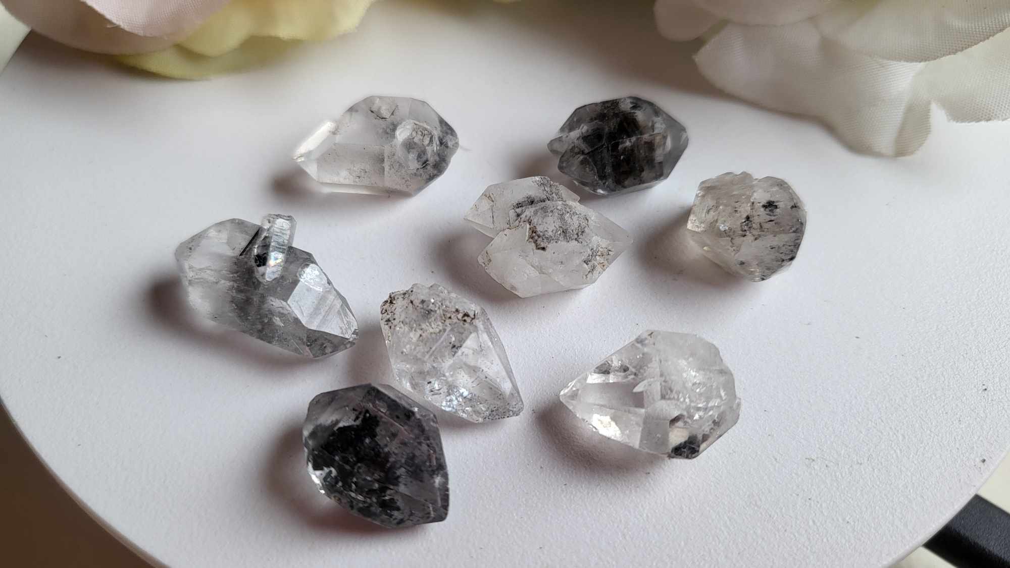 zakje met 8 puntjes Gewicht: 16 gram De Tibetanen die Sichuankwarts of Tibetaans kwarts mijnen zeggen dat ze miljoenen jaren geleden door sterrenwezens op aarde geplaatst zijn, net zoals lemurisch zaad kristallen en dat het nu tijd is dat ze gevonden worden. Sichuankwarts geeft je makkelijker toegang tot de Akasha kronieken en hij resoneert met de oude heilige esoterische kennis en cultuur van het Oosten.Omdat de bergen zo hoog zijn kunnen alleen Tibetanen deze unieke kristallen mijnen. De Himalaya’s zijn een heel krachtige spiritueel centrum van Moeder aarde. De wezens die met deze kristallen verbonden zijn, zijn zeer hoog geëvalueerd. De kristallen zijn eonen lang voor ons verborgen gehouden door oude wijze beschermers. De Tibetanen die deze stenen mijnen zeggen dat ze miljoenen jaren geleden door sterrenwezens op aarde geplaatst zijn, net zoals lemurisch zaad kristallen en dat het nu tijd is dat ze gevonden worden. Met Sichuankwarts of Tibetaans kwarts heb je makkelijker toegang tot de Akasha kronieken en hij resoneert met de oude heilige esoterische kennis en cultuur van het Oosten. Sichuankwarts heeft een zeer hoge vibratie die geest en materie integreert. Hij wordt gebruikt bij (sjamanistische) rituelen, healing, meditatie, channeling en hij activeert de genezende eigenschappen van andere kristallen. Ook creëert de steen een bol van beschermend licht om je lichaam. Sichuankwarts verbindt de voorhoofd- en kruinchakra’s en opent deze. Hij geeft innerlijke visie en stimuleert helder-zien, telepathie, zielencommunicatie en contact met gidsen en wezen uit de hogere dimensies. Spiritueel is Sichuankwarts verbonden met de Witte Vlam van zuiver bewustzijn. Ondanks de hoge vibratie geeft dit kristal door de inclusies van koolstof of hematiet een enorm gevoel van aarding. De wezens verbonden met dit kristal werken via je basis chakra omhoog tot je hogere etherische lichamen, ze schonen ze op en lijnen ze uit. Tijdens healing harmoniseert hij de verfijnde lichamen met het fysieke lichaam en overbrugt energiekloven langs de chakralijn en ruimt chakra blokkades op. Emotioneel doorbreekt hij ingesleten patronen, afhankelijkheidsrelaties en wijst op oorzaken van psychosomatisch ongemak. Hij geeft diepe healing van de biomagnetische mantel, de etherische blauwdruk en zorgt voor multidimensionale cellulaire regeneratie. Het is een echte Meestergenezer die diepe fysieke genezing op gang brengt, heel krachtig samen met andere stenen die bij een specifiek proces horen, kies deze op je gevoel. Doordat het dubbeleinders zijn kan de steen aan beide kanten tegelijk energie opnemen en uitstralen. Ze zijn heel nuttig bij healing omdat ze negativiteit absorberen en helpen verslavingen te overwinnen. Ze integreren voorheen geblokkeerde delen van het zelf. Sichuankwarts helpt je om je te centreren. Het is een zeer krachtig kristal om elektromagnetische vervuiling of radioactiviteit op te schonen. Hij brengt energiemeridianen op één lijn, stimuleert het cellulair geheugen waardoor de cellen weer volgens de originele blauwdruk uitgelijnd worden en zorgt voor multidimensionale healing.