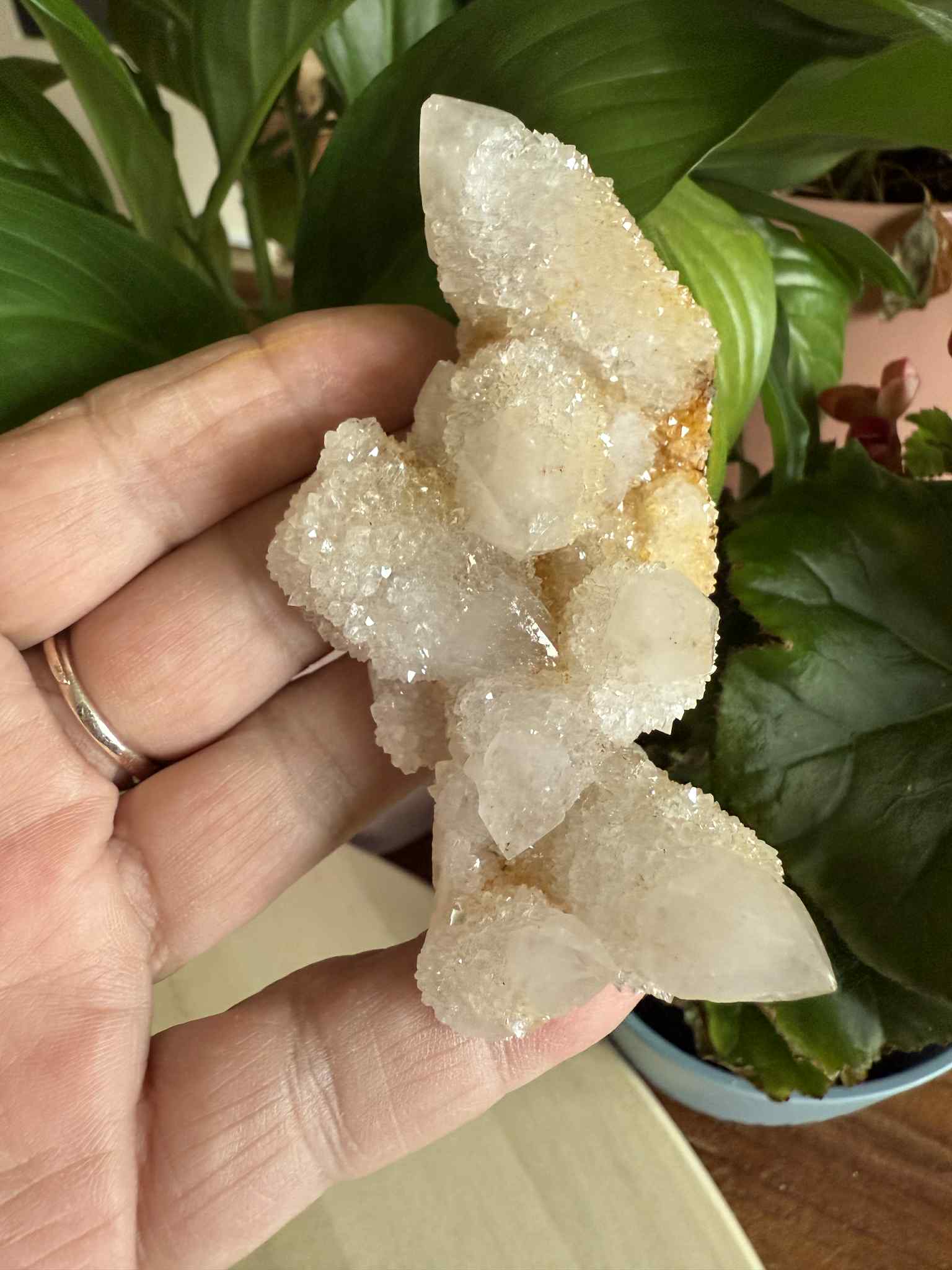 Deze steen die in de kleuren paars, goud, wit, of een combinatie hiervan gevonden wordt, komt van een van de oudste gebergten op aarde, waar zich een Vortexenergie bevindt. Deze Ziel- of Spirit- kwarts bestaat uit clusters of losse punten die begroeid zijn met allemaal kleine puntjes. Het centrale kristal is de ‘oude ziel’ die de energieën van nieuwere zielen aantrekt in de vorm van de kleinere kristallen. Zielkwarts bevordert de samenhang en vergemakkelijkt de samenwerking tussen leden van een groep. Het is een kristal van harmonie en uitlijning. Het neemt alle kristalenergieën van de hoofdsteen en versterkt ze keer op keer op alle kleine punten, elk reflecterend licht heen en weer naar elkaar, zodat iedereen kan baden in de gecombineerde uitstraling van het geheel. De resonantie ervan is spiritueel verheffend, straalt hoog-vibrerende energie in alle richtingen uit en is een perfecte bondgenoot in het uitlijnen van de aura, chakra’s, meridianen en het fysieke lichaam, evenals het uitdragen van de informatie van de geest, hogere zelf naar de wereld.