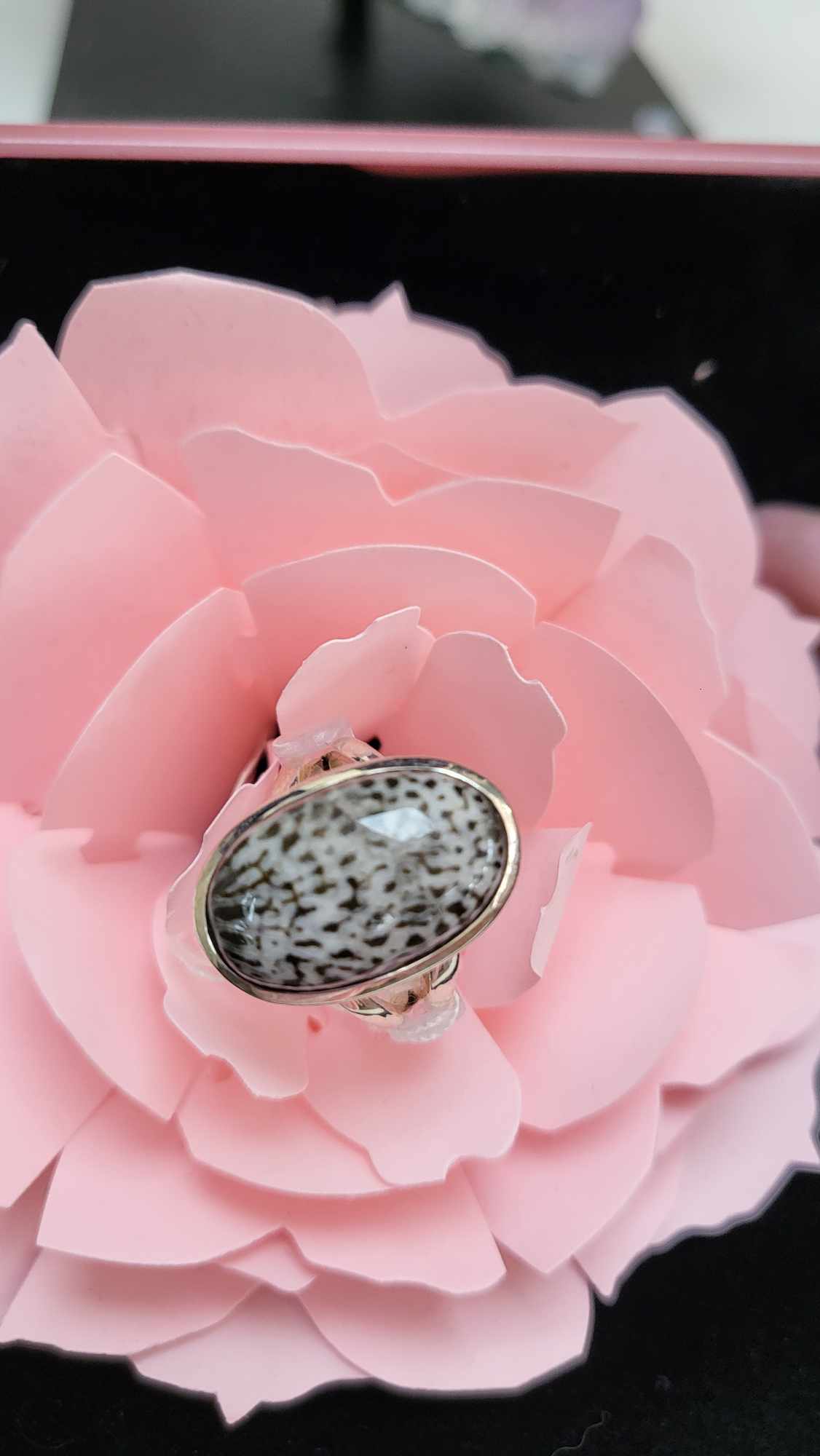 Zwarte Stingray Fossiel Koraal zilveren ring